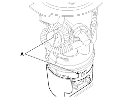Освободите фиксирующие крючки и снимите датчик уровня топлива (А).