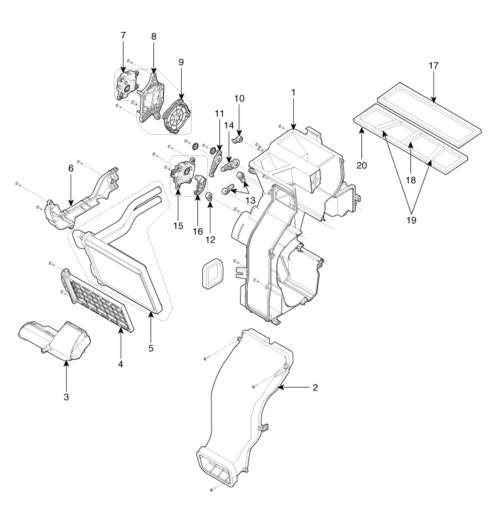 Kia Sorento: Heater Unit Components - Heater - Heating,Ventilation And Air Conditioning - Kia Sorento XM 2011-2023 Service Manual Kia Sorento: Компоненты блока отопителя