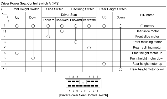 Когда переключатель сиденья с электроприводом находится в каждом положении, убедитесь, что непрерывность