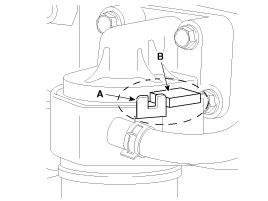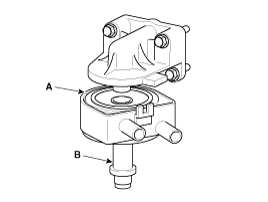 затем установите масляный радиатор с помощью фиксирующего болта (B).