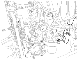 Отсоедините шланги охлаждающей жидкости масляного радиатора (А).