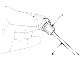Вставьте тонкую палочку (А) в клапан PCV (В) из резьбового отверстия.