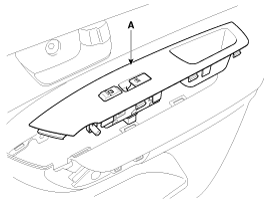 Снимите узел переключателя стеклоподъемника (А) с обшивки передней двери.