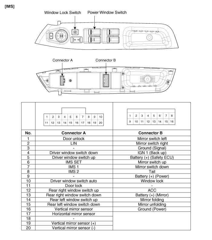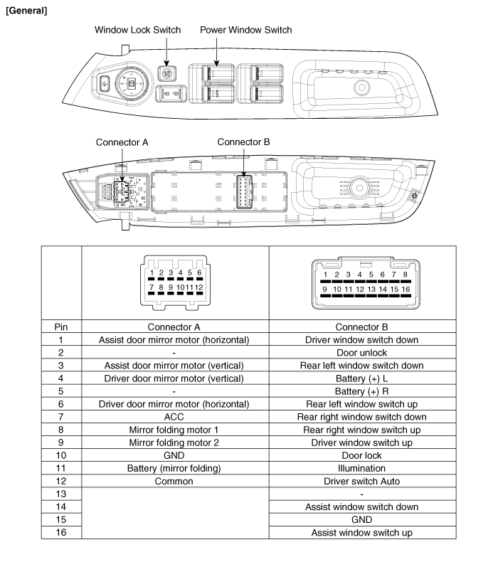 Kia Sorento: Компоненты переключателя стеклоподъемников