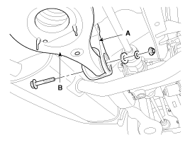 Ослабьте болт и гайку и снимите задний нижний рычаг (B) с