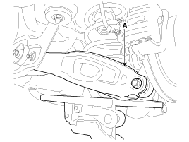 Подоприте задний нижний рычаг (А) домкратом, как показано на рисунке.