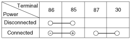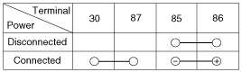 когда питание и земля подключены к клеммам №85 и №86.
