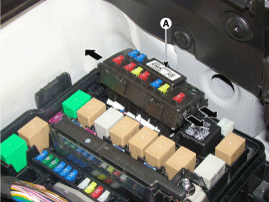 Выдвиньте 3 крючка в блоке реле в машинном отделении в направлении стрелки.