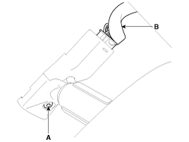 Снимите крепежный винт зеркала (А) и разъем (В).