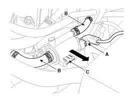 Отсоедините паровые шланги (B) от соленоида управления продувкой.