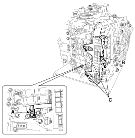Снимите болты (C) после отсоединения разъема электромагнитного клапана.