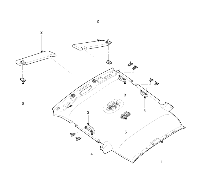 Kia Sorento: Roof Trim Components - Exterior - Body (Interior and Exterior) - Kia Sorento XM 2011-2023 Service Manual Kia Sorento: компоненты отделки крыши