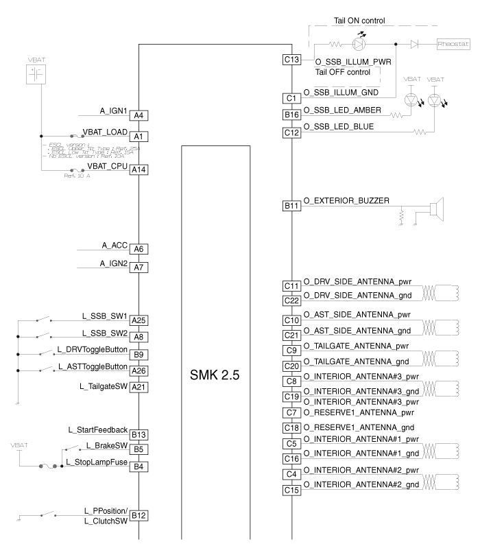 Kia Sorento: Принципиальная схема блока смарт-ключа