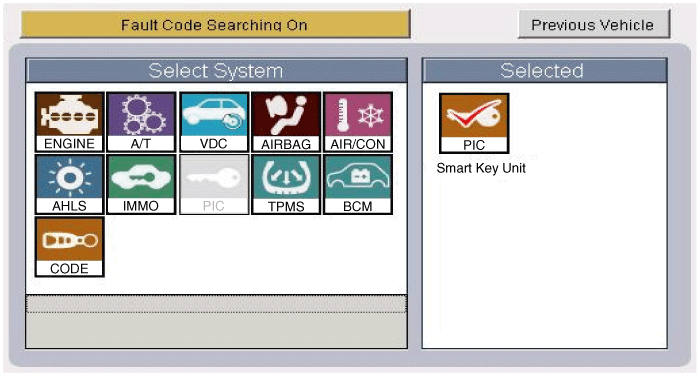 Выберите модель и меню «Система смарт-ключей (кнопка запуска)».