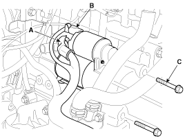 Открутите 2 болта (С), удерживающих стартер, затем снимите стартер.