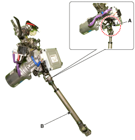 Ослабьте болт (А) и затем отсоедините узел универсального шарнира.