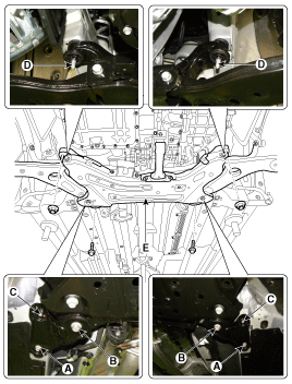 Ослабьте гайку (A-2ea) и снимите демпфер подрамника (B).