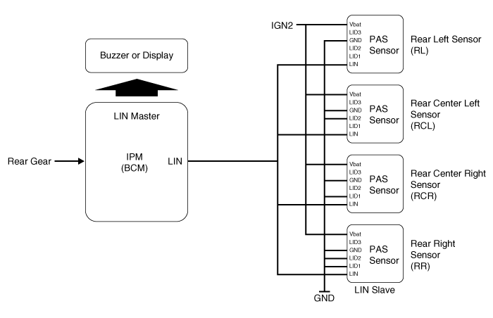 В случае информации датчика RL/RR, BCM обрабатывает информацию каждого датчика.