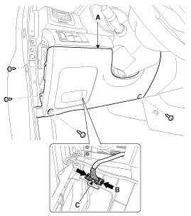 Открутив крепежные винты, снимите бардачок.