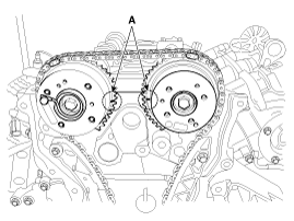 если смотреть спереди), убедитесь, что метки ВМТ (A) на впускном и
