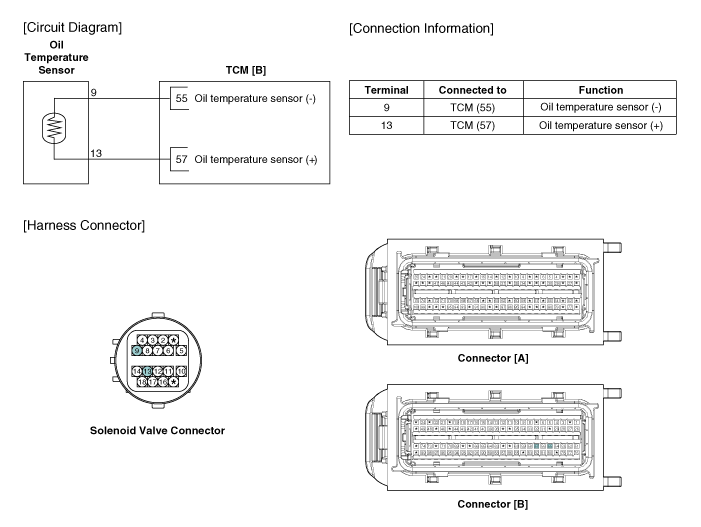 Kia Sorento: схема датчика температуры масла в коробке передач
