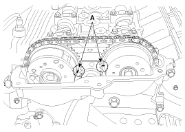 Снимите болт сервисного отверстия (А) крышки цепи привода ГРМ.