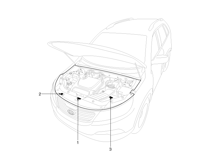XM второго поколения (2011-2023 гг.) / Kia Sorento XM 2011-2023 Руководство по ремонту / Общая информация / Предупреждающие и предостерегающие этикетки