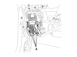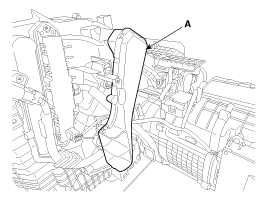 Ослабьте болты крепления блока отопителя и вентилятора (А).