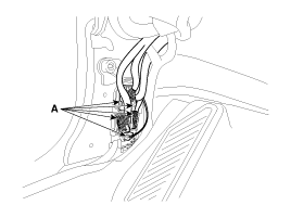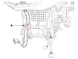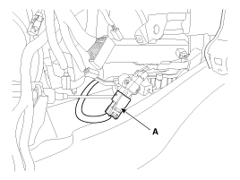 Отсоедините разъем (А) модуля управления подушками безопасности (SRSCM).
