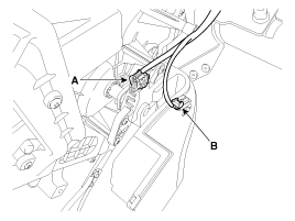 Отсоедините разъем (А) и монтажные зажимы (В) на передней стойке.