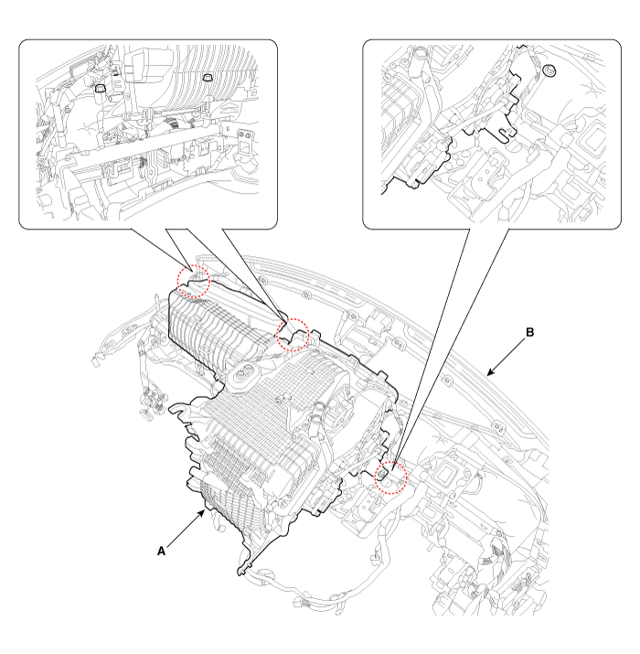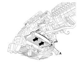 Снимите блок высоковольтного нагревателя PTC (A) после ослабления крепежных винтов.