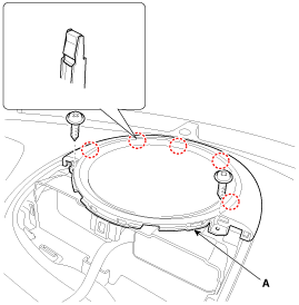 Используя плоскую отвертку или съемник, снимите центральную вентиляционную панель (A) подушки безопасности.