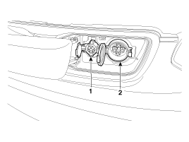 порт зарядки (2) в передней части автомобиля. Заряд начинается, когда ICCB
