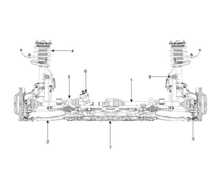 6. Рулевой редуктор 7. Подрамник 8. Тяга переднего стабилизатора |