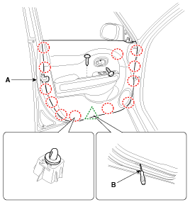 Ослабив крепежные винты, снимите обивку передней двери (А) с помощью плоской отвертки (В).