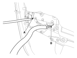 Отсоедините разъем выключателя наружного зеркала заднего вида (А) и разъем выключателя электрического стеклоподъемника (В).