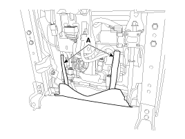 Снимите чехол подушки переднего сиденья (А) с рамы подушки переднего сиденья.
