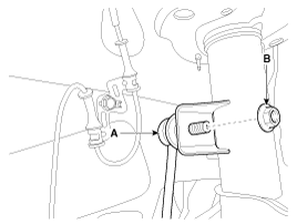 Ослабьте болты (А, В) и снимите датчик скорости вращения колеса.