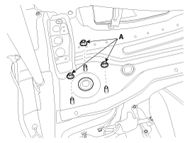Снимите переднюю стойку в сборе и ослабьте гайки крепления стойки (А).