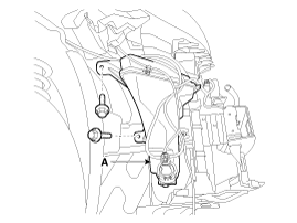Отсоедините разъем двигателя омывателя (А) после снятия шланга омывателя с двигателя.