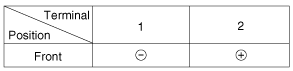Подсоедините положительный (+) кабель аккумуляторной батареи к клемме 1, а отрицательный (-) кабель аккумуляторной батареи к клемме 2.