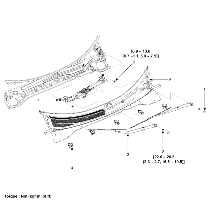 Ослабьте гайку рычага стеклоочистителя (В) после снятия крышки стеклоочистителя (А).