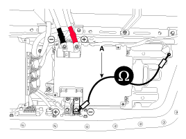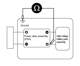 Подсоедините положительную (+) клемму к клеммам высоковольтной батареи (+, -) для измерения сопротивления.