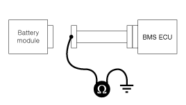 Измерьте сопротивление изоляции между жгутом аккумуляторного модуля и нижней частью корпуса.