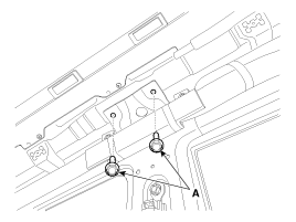 Снимите разъем электродвигателя панорамного люка (А), нажав на стопорный штифт.
