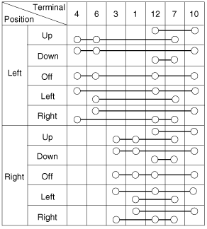 Проверьте целостность цепи между клеммами в каждом положении переключателя в соответствии с таблицей.