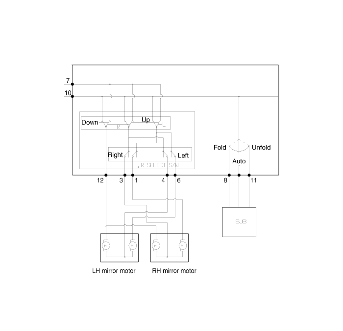 Компоненты переключателя зеркала заднего вида с электроприводом и расположение компонентов