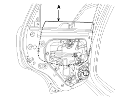 Снимите заглушку отверстия крепления стекла задней двери (А).
