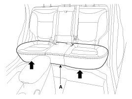 Снимите подушку заднего сиденья в сборе (А), потянув ее вверх.