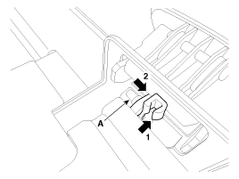 Снимите стержень замка заднего сиденья (А) в направлении, указанном стрелкой.